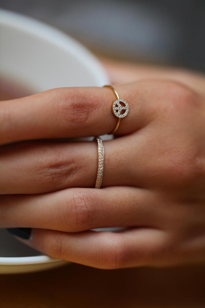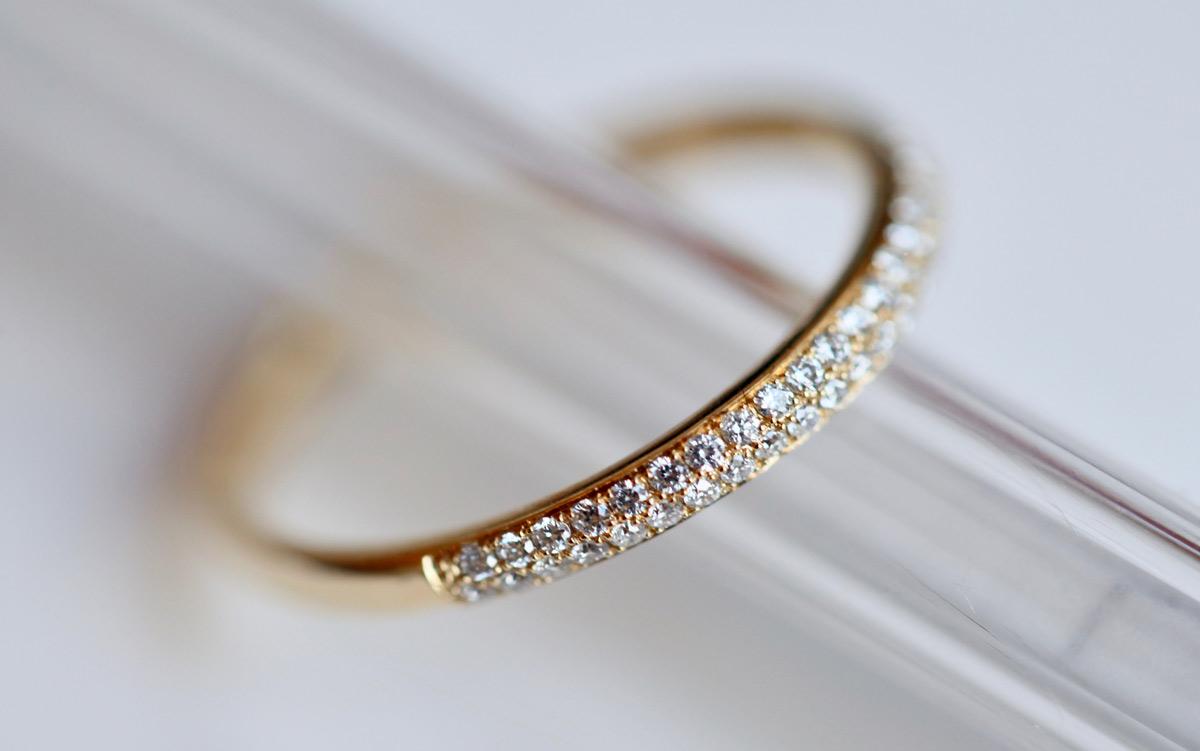 Anillo de amor, una elegante banda de oro medio pavimentada en 0.21 quilates de diamantes. Viene en una opción de oro amarillo, blanco o rosa.