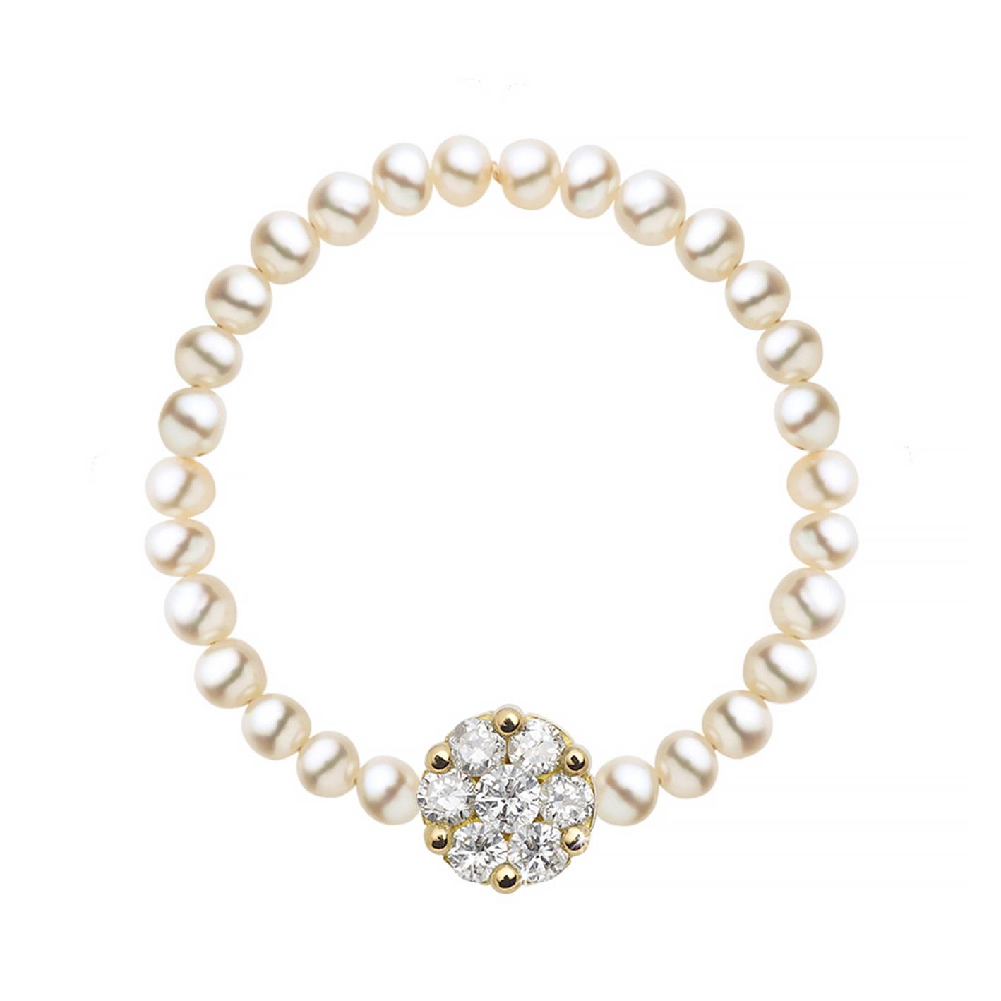 Diamond & Pearl Illusion Anillo de perlas con diamante de 0.5ct en base en oro amarillo
