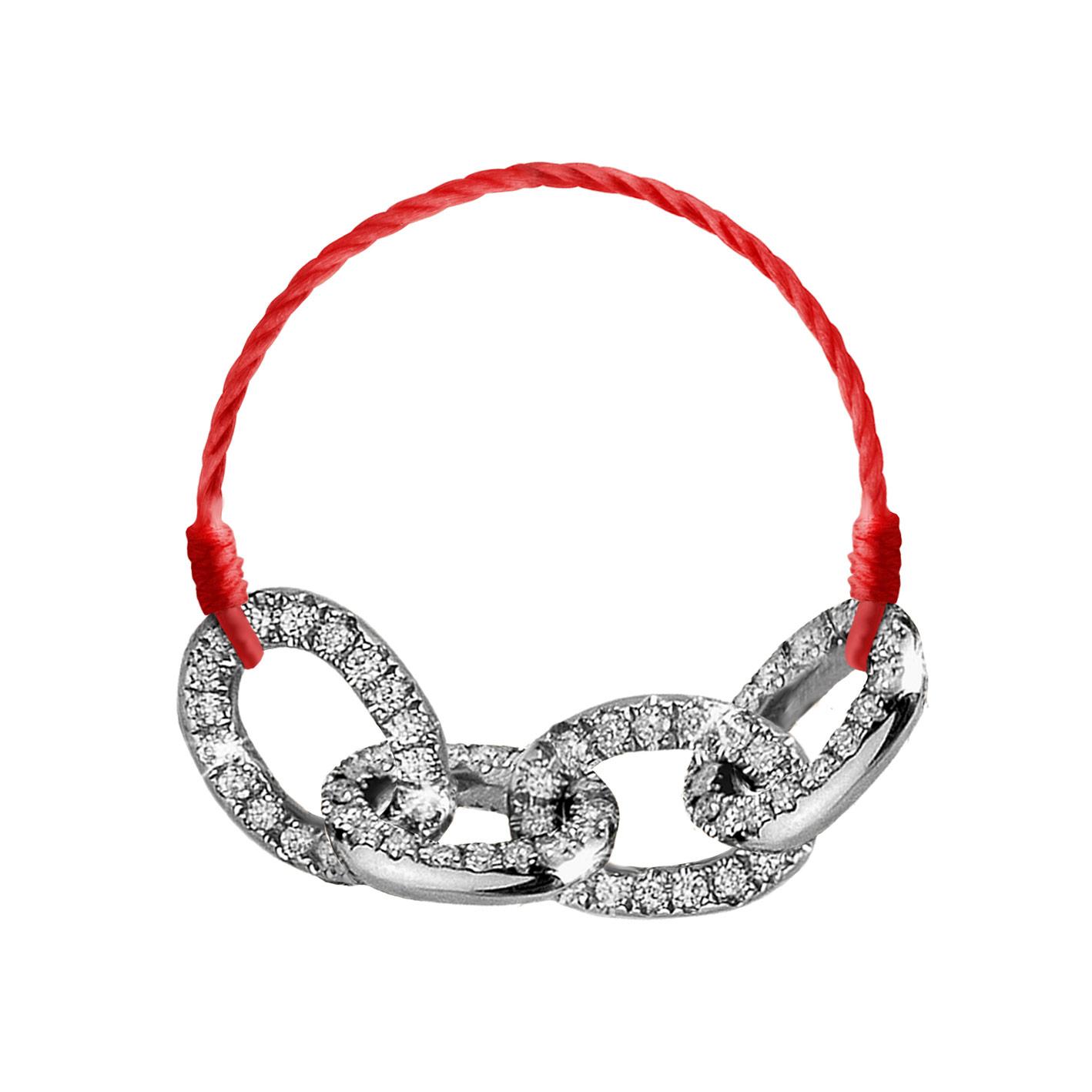 ¡La coronación del diamante! Cuatro eslabones pavimentados con diamantes (0,18 quilates) adornan este precioso anillo de alambre. Está disponible en cuatro colores dorados y 80 colores de hilo.