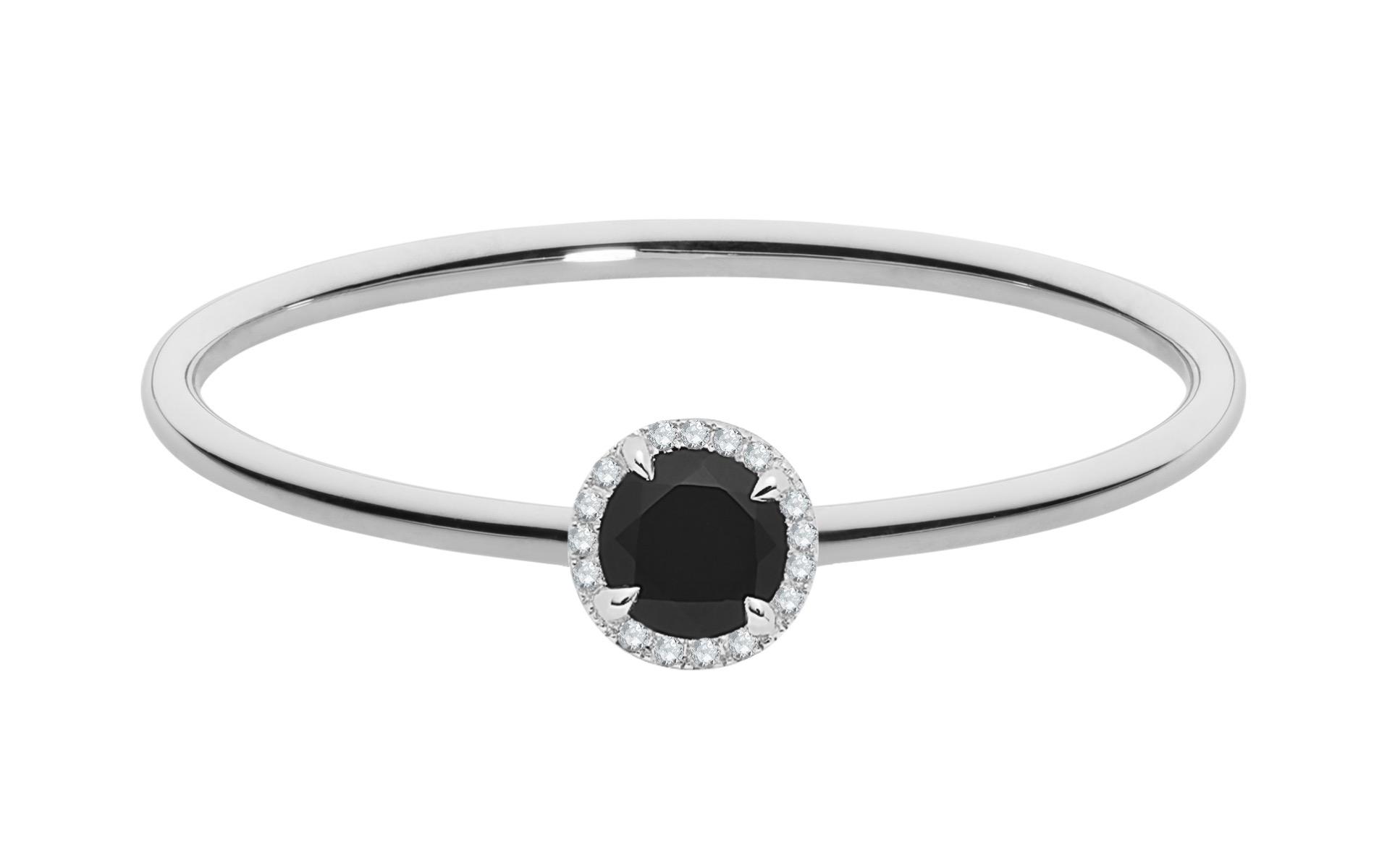 Este anillo es una seducción total, 4 originales garras sostienen un onyx central donde 16 pequeños pero resplandecientes diamantes lo rodean para un total de 1,05 quilates. Este inédito anillo está disponible en tres colores oro.