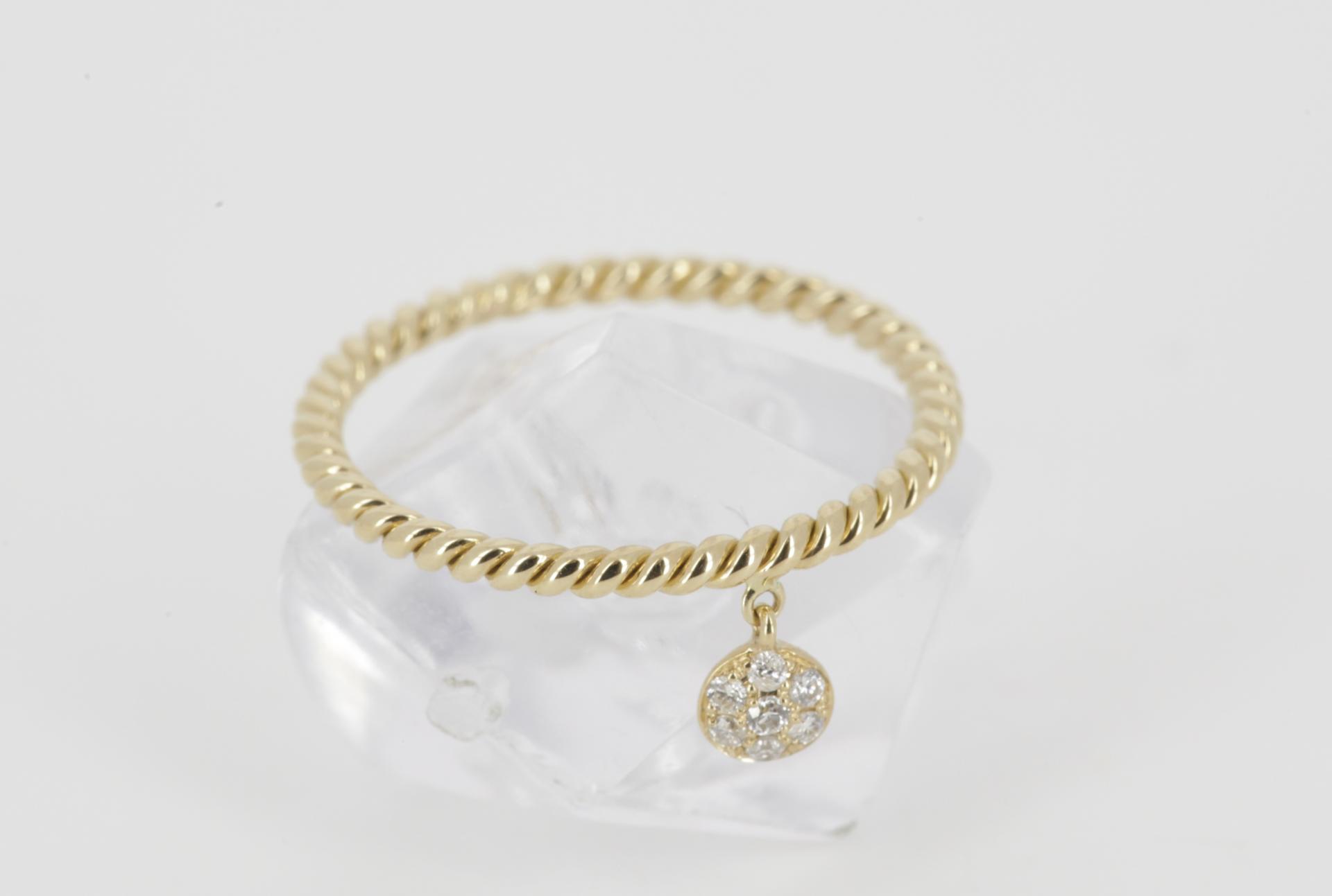 ¡El anillo "Very Nice" es un anillo para enamorarse! Siete pequeños pero resplandecientes diamantes se unen para formar 0,06 quilates que se posan sobre un hermoso dije que cuelga de un delicado anillo trenzado en oro. Escoge tu favorito entre oro blanco, amarillo y rosa.