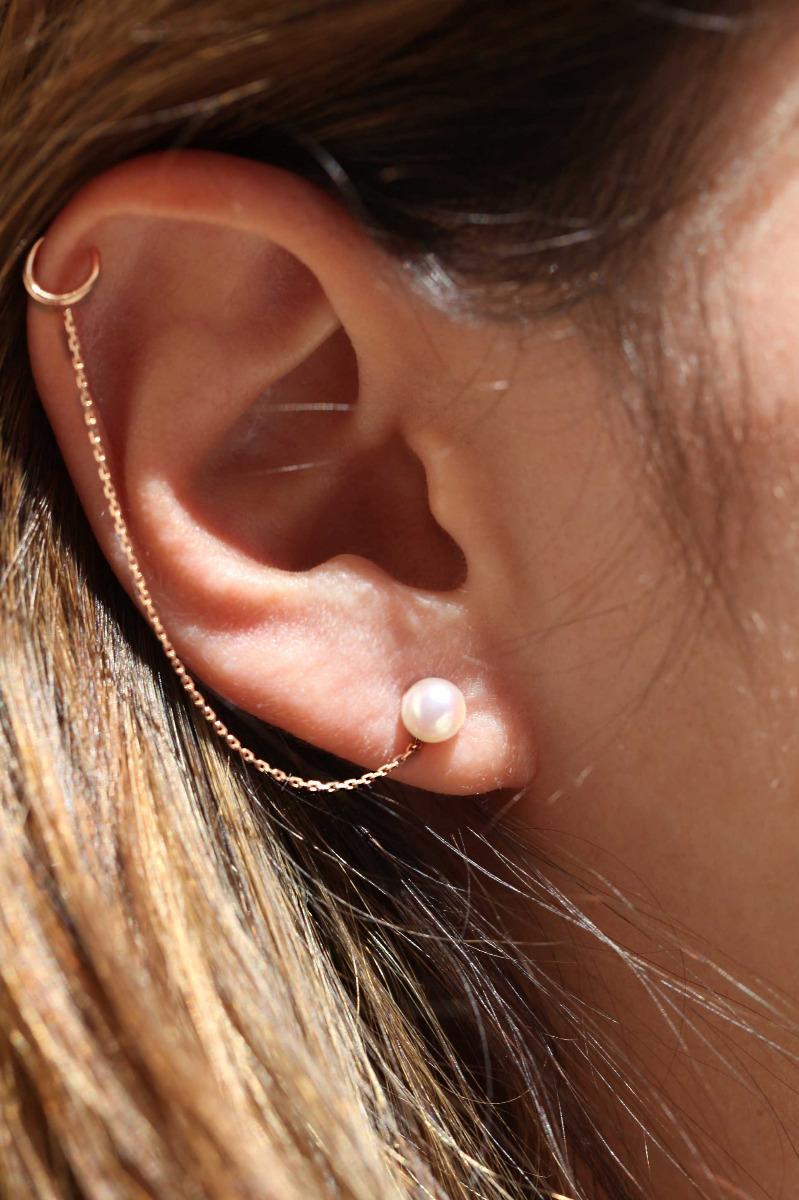 Sensuelle Akoya Impertinente Rose gold chain lobe earrings with Akoya pearls