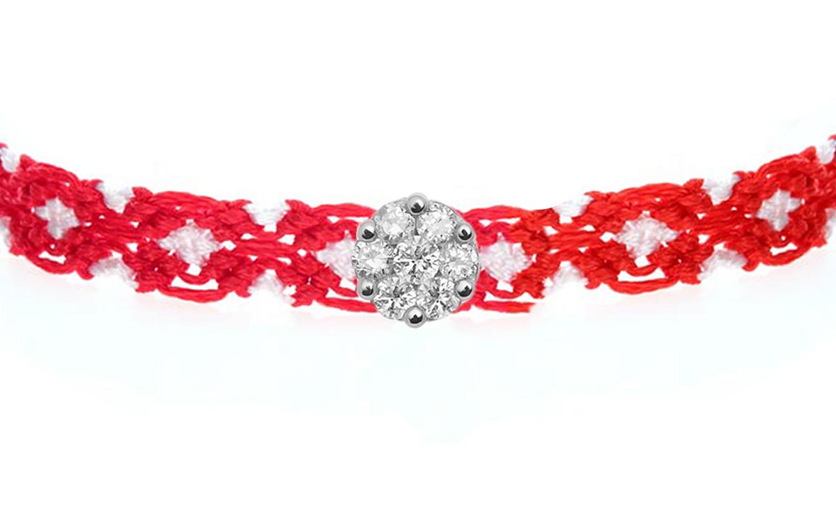 La pulsera brasileña que acompañó tus vacaciones, se renueva con un hermoso diamante So llusion (siete diamantes que suman en total 0.10 quilates) montados sobre una garra engastada en oro y acompañado de un broche y tres anillos de oro 18k par ajustar a la perfección tu pulsera! (Recuerda que el patrón de tejido de la pulsera puede variar para la misma combinación de colores ya que esta hecha a mano).