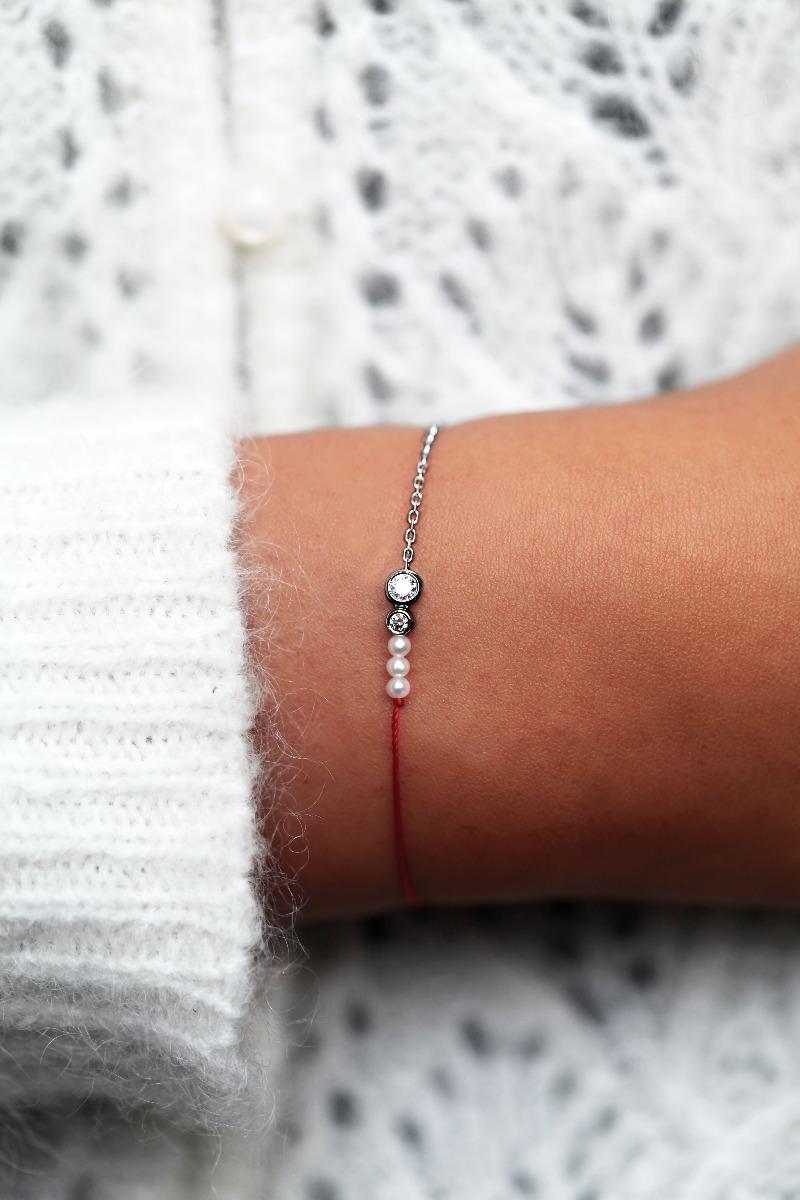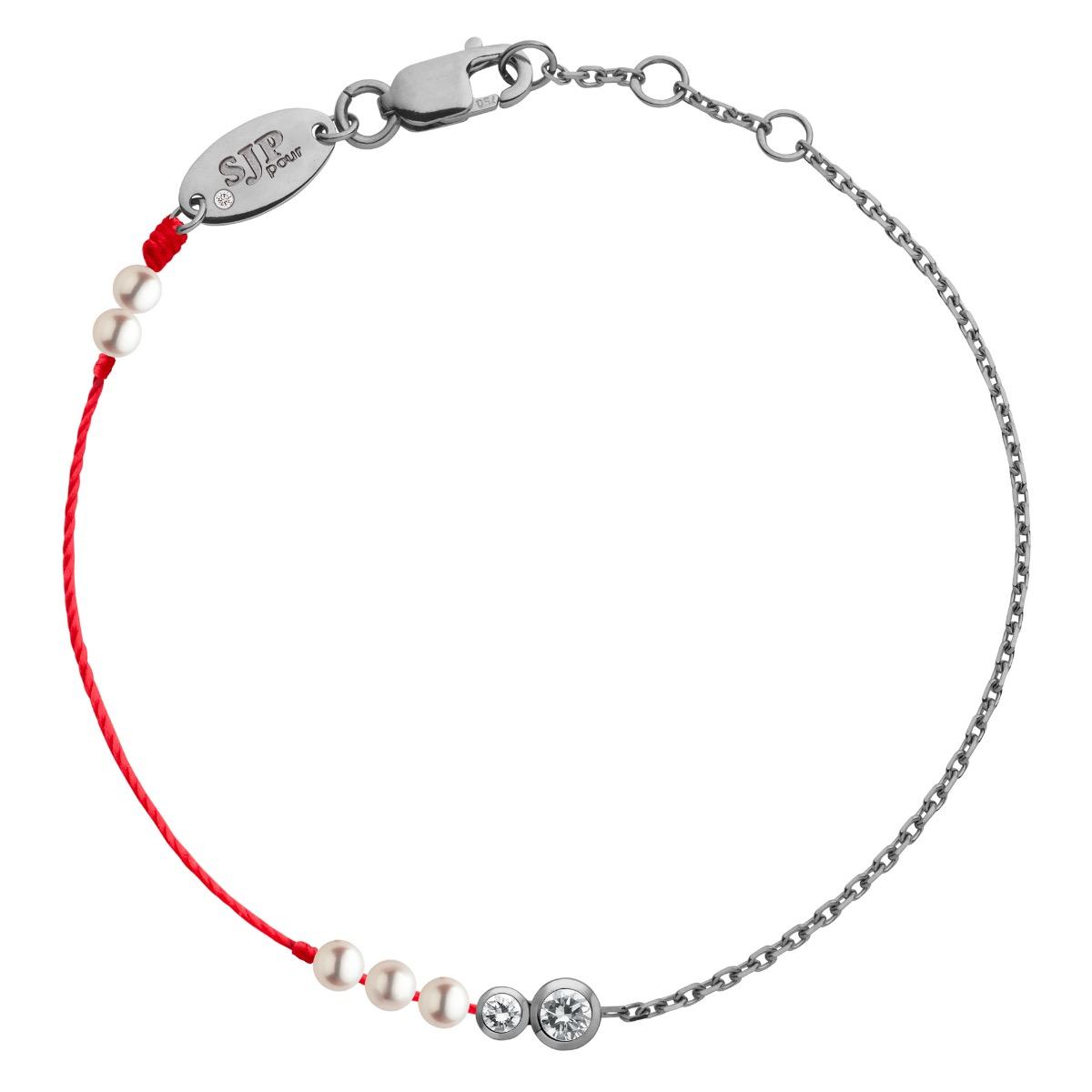 By Sarah Jessica Parker String-Chain Bracelet For Women with 0.155ct Round Diamond Pearl in Black Gold Bezel Setting