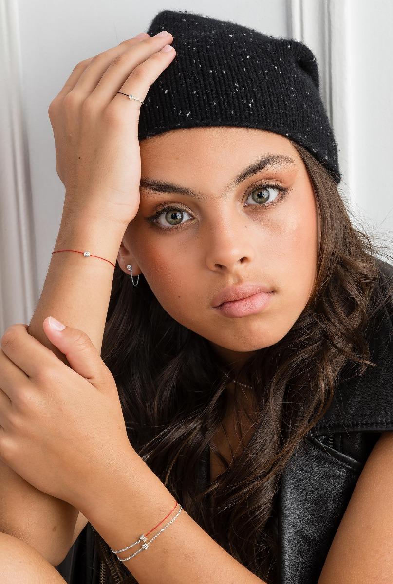 Comtesse Pulsera en hilo y cadena con diamante baguette de 0.10ct en base de oro blanco