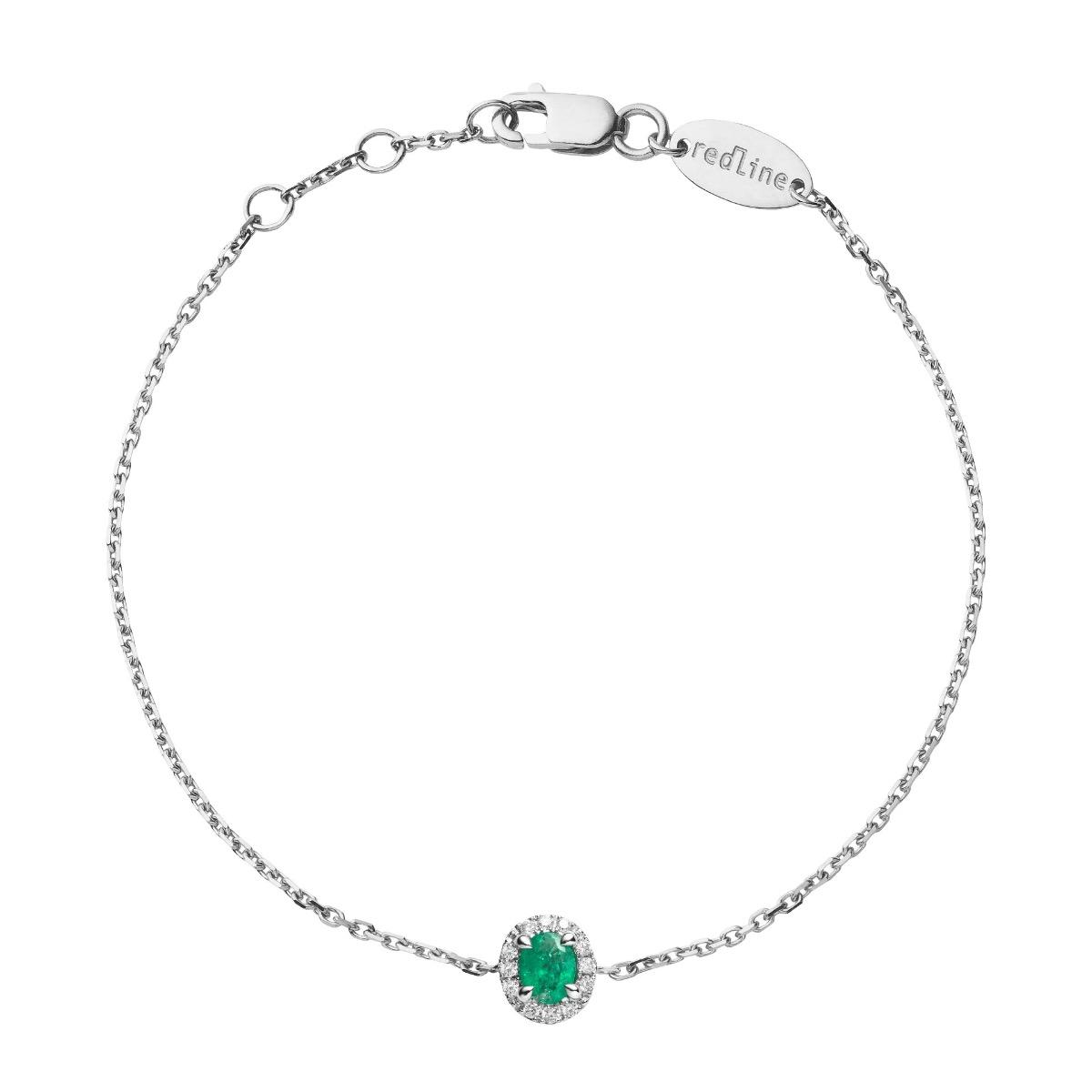 La pulsera Diva de Redline sorprenderá a los más encantadores, una hermosa esmeralda, símbolo de amor, rodeada de hermosos diamantes blancos, y una pequeña cadena de oro despertará a la diva en ti.