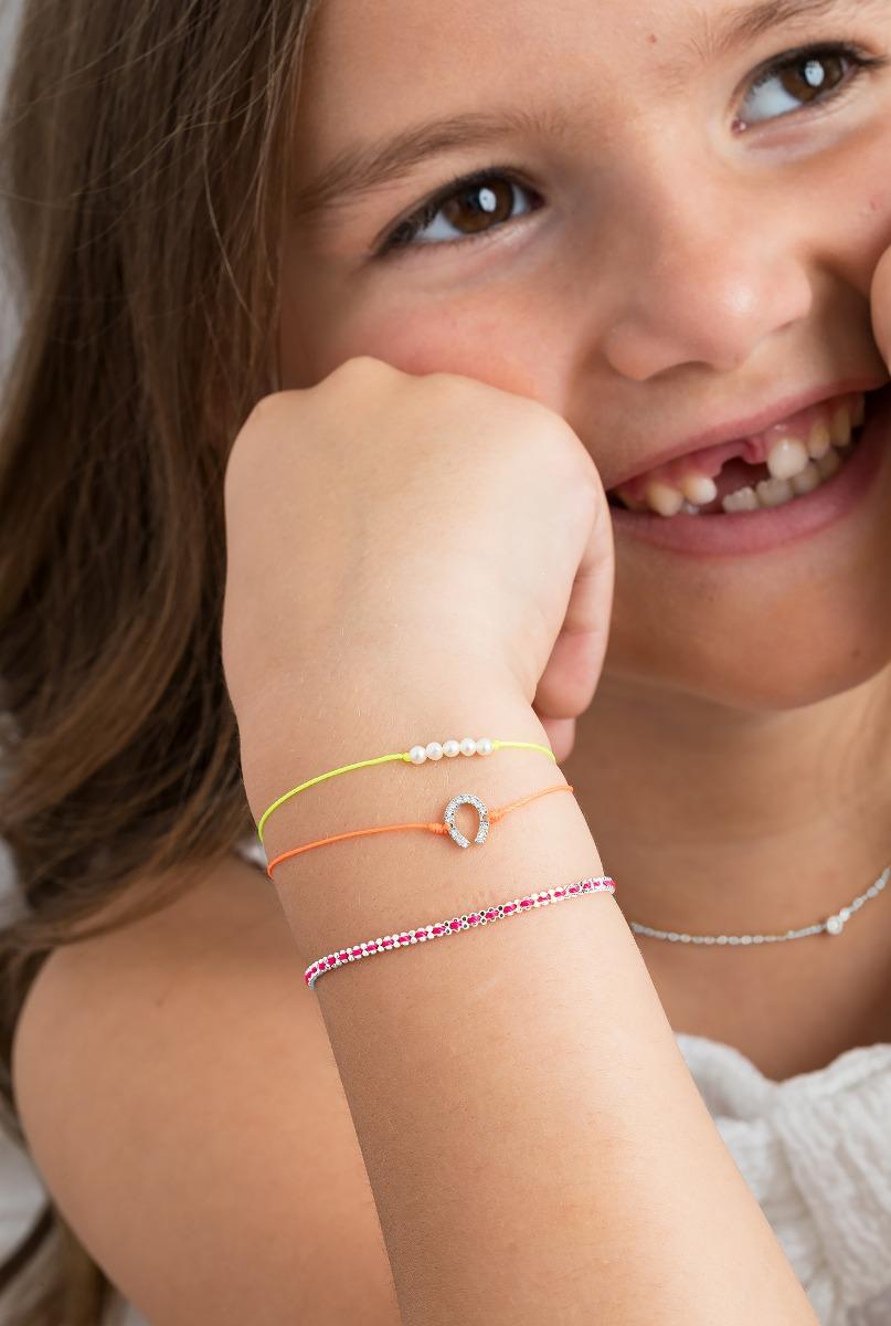 Cómo imaginar que un símbolo tan pequeño puede tener tantos significados y virtudes. La herradura es de hecho un símbolo de protección y prosperidad. Este amuleto hecho en oro e incrustado en diamantes esta puesto con delicadeza sobre un hermoso hilo insignia de la marca y cerrado por un broche y tres anillos de oro 18 k para un ajuste perfecto. Personaliza tu pulsera con los 3 colores de oro y los 80 colores de hilo que tenemos para ti.