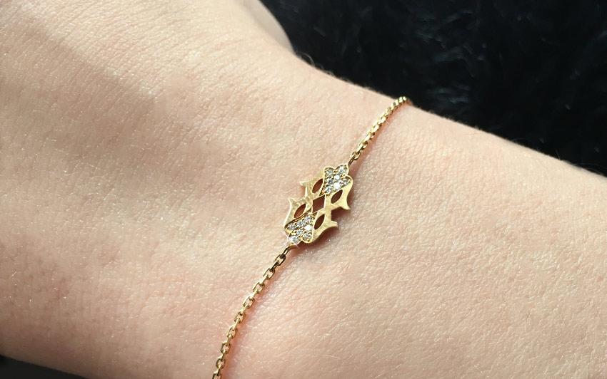 Las formas onduladas se mezclan con diamantes brillantes (0.075 quilates) para revelar con estilo y de ensueño una joya majestuosa. La pulsera Lady Five es asombrosa en su originalidad y refinamiento y viene en tres colores dorados de 18 quilates. Un broche y una escala de tres anillos ajustarán el tamaño de la joya.