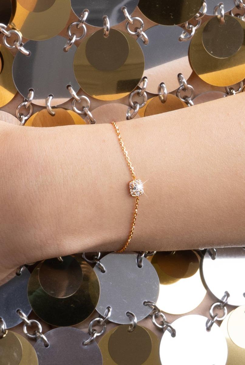 Promesse Chain bracelet with emerald-cut diamond in rose gold prong setting