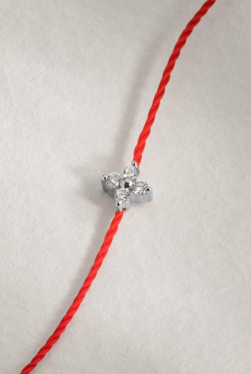 Shiny String bracelet with 4 diamonds on a star in white gold