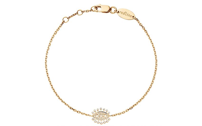 ¡Redline presenta su nueva pulsera Super Power! Un ojo protector pavimentado con diamantes engastados en una cadena de oro de 18 quilates. Un broche y una escalera de oro de 3 anillos vendrán para terminar esta preciosa joya. Una pulsera simbólica fuerte para brindarte felicidad a lo largo de tu vida.