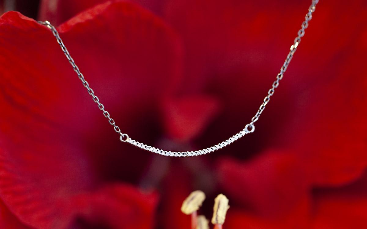 Los diamantes engarzados descansan sobre una delicada cadena de oro de 18 quilates firmada por Redline. Preciosidad y originalidad para este collar que existe en oro negro.