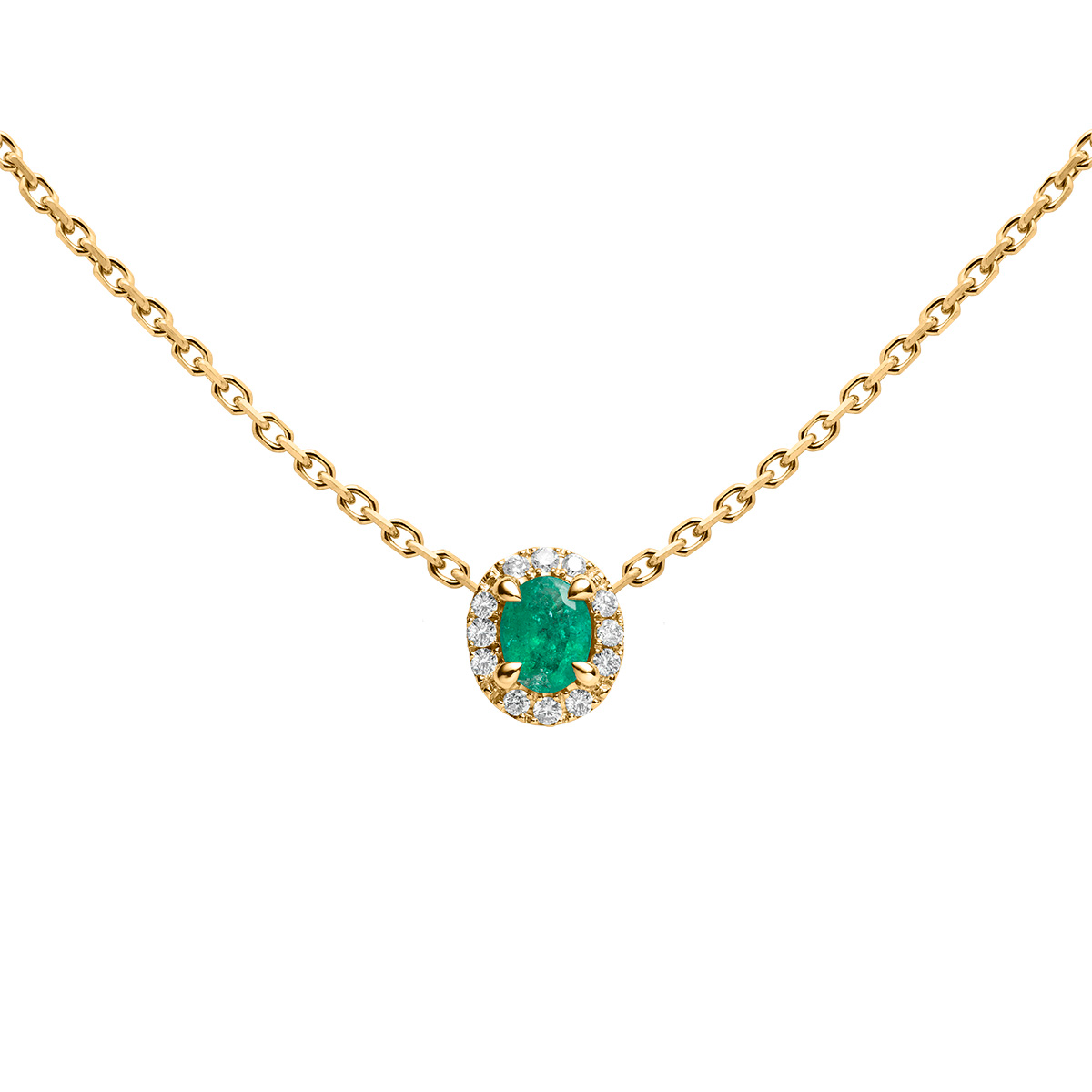 Diva Émeraude Yellow gold chain necklace with emerald and diamonds
