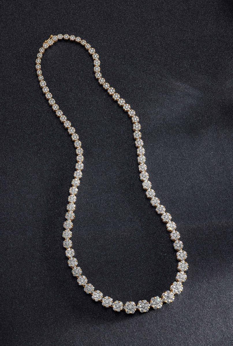 Descubra el suntuoso collar river de diamantes en oro amarillo de 18 qt de la colección Illusion. No menos de 99 cabezas de diamantes Illusion se alzan con orgullo sobre una base forjada en oro de 18 quilates. En total, el collar de río de diamantes Redline Paris tiene 495 diamantes pequeños que irradiarán desde su cuello. Con su diseño atemporal, este collar river de diamantes en oro amarillo es el símbolo del lujo y la elegancia. Ya sea que se use en una reunión social, un evento especial o simplemente para realzar un atuendo cotidiano, aporta un toque de glamour y gracia a cada momento.