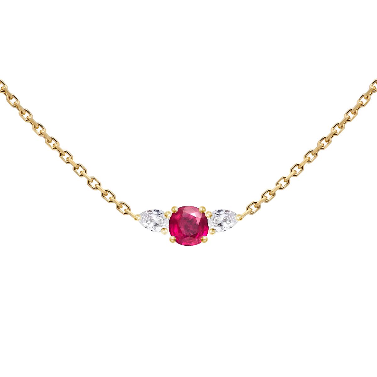 Explore el refinado esplendor del collar So Abby Ruby de Redline. Esta elegante pieza de joyería presenta un rubí excepcional, bellamente resaltado por cuatro delicadas puntas. A cada lado, dos diamantes en forma de gota añaden un toque único de sofisticación. Elaborado con artesanía experta, este collar de cadena logra un equilibrio perfecto entre el brillo clásico del rubí y la elegancia distintiva de los diamantes en forma de gota. Un símbolo atemporal de refinamiento y sofisticación, el collar So Abby Rubis de Redline es la pieza de joyería ideal para realzar su estilo.