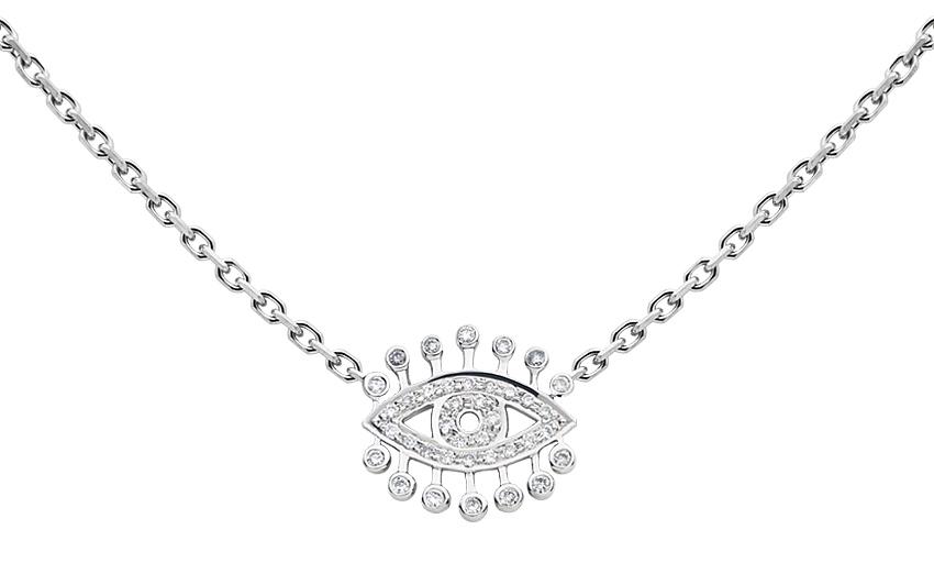 Redline hace algo nuevo con su nuevo collar Super Power. Un ojo protector completamente de diamantes hace que este collar Redline sea único. Esta joya en oro de 18 quilates es personalizable gracias a sus diferentes colores de oro. Un broche y una escalera le permitirán ajustar esta joya a su tamaño.