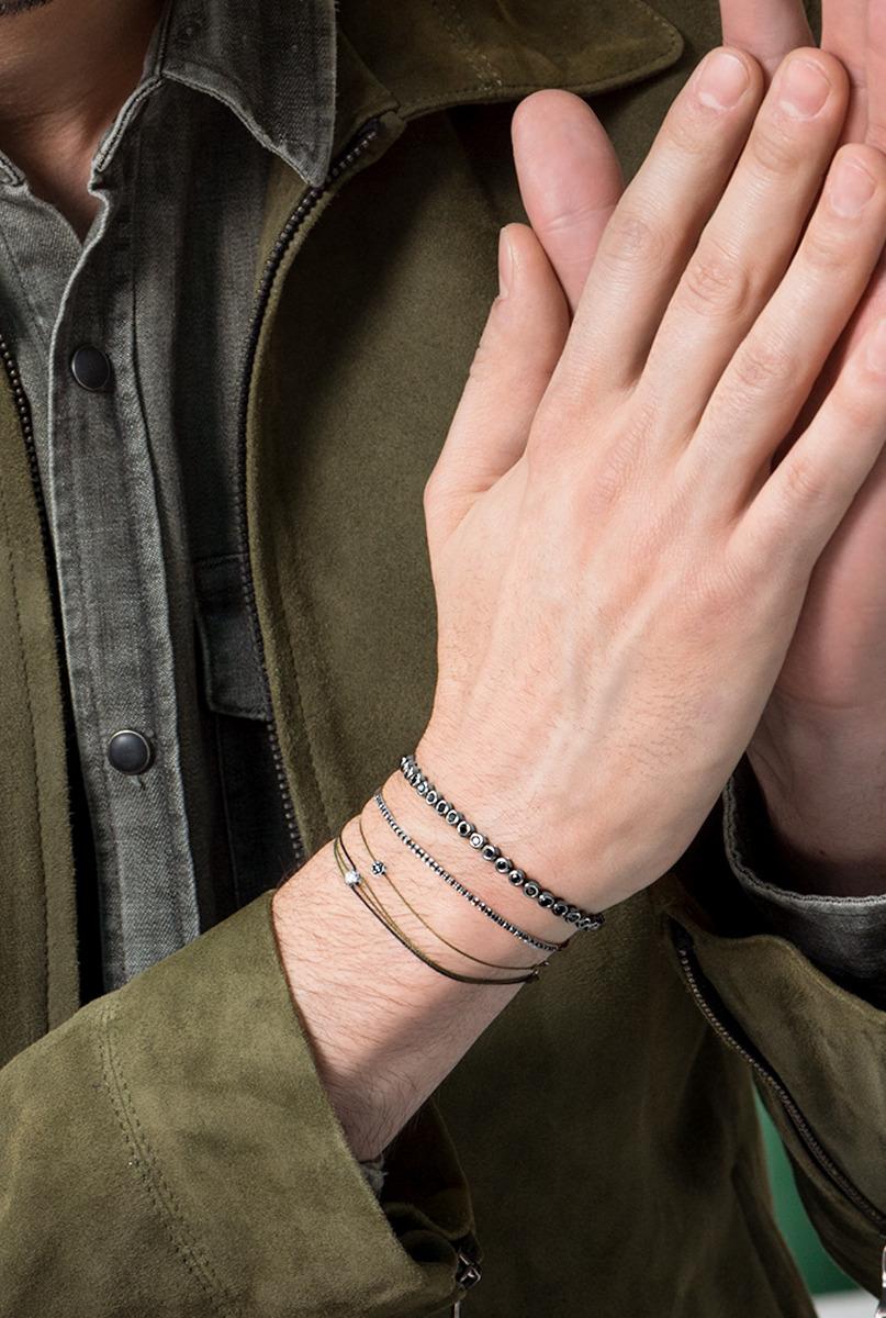 Illusion Kcolor String Bracelet For Men with 0.05ct Round Black Diamond in White Gold Cluster Setting
